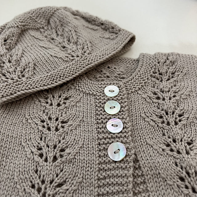 Other requirements: 2.75mm (US2) (hat only), 3.00mm (US2.5) & 3.25mm (US3) needles, 7 stitch holders, 10 place markers