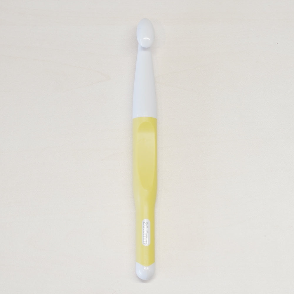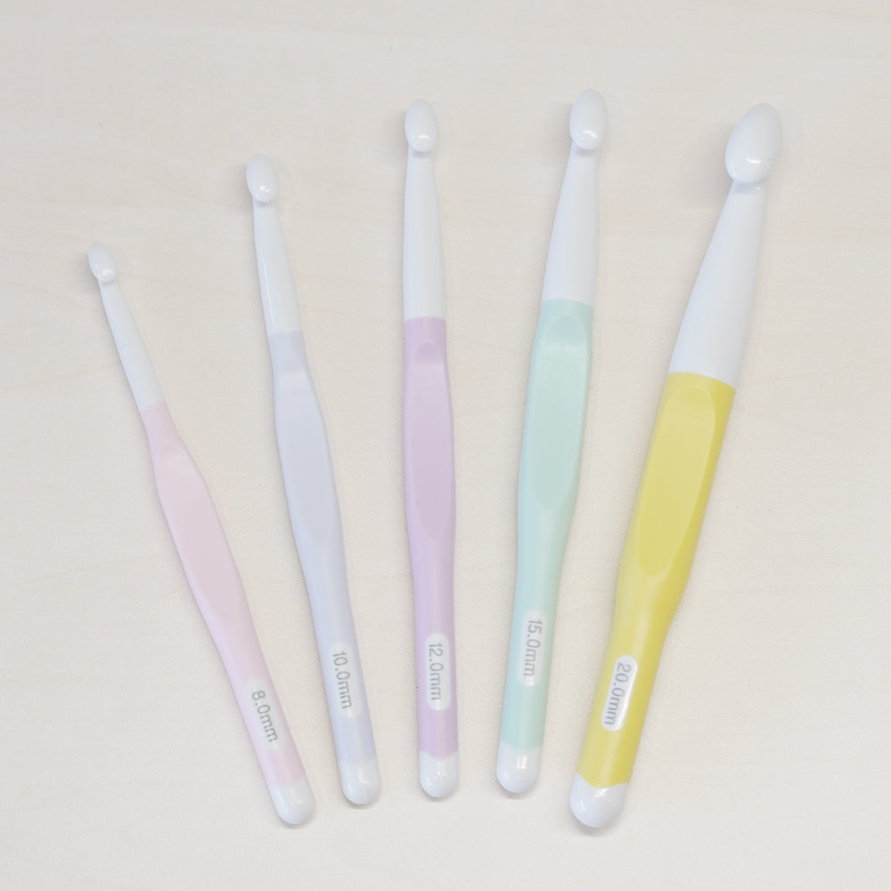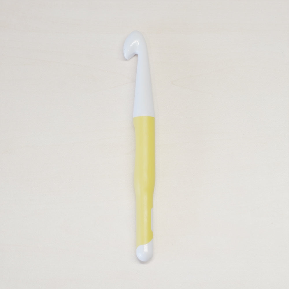 Features a soft thermoplastic rubber handle for comfort and a sturdy ABS hook for smooth stitching. Ideal for bulky yarns and larger projects.