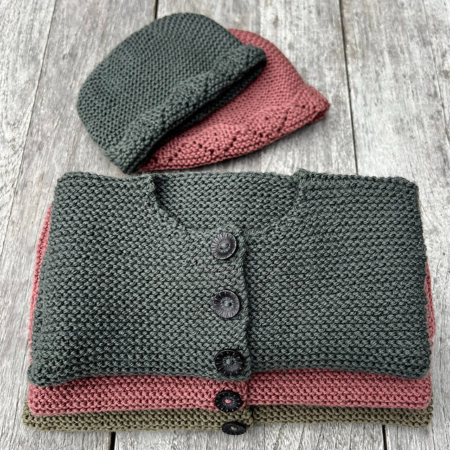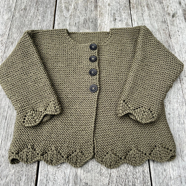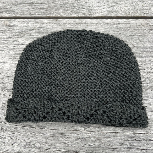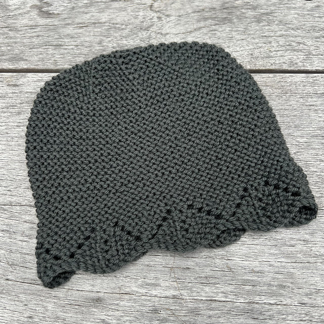 A simple but sweet, lacy edge design with generous sizing to get maximum use from the size you have knitted - positive ease is around 5cm
