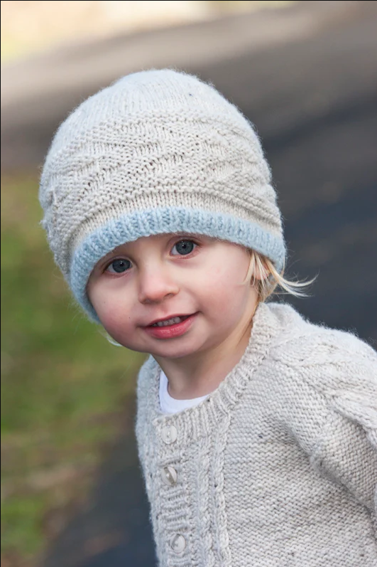 One pair each size 3.25 mm [3 US], 4 mm [6 US] knitting needles, 3.25 mm [3 US] double pointed needles and three buttons.