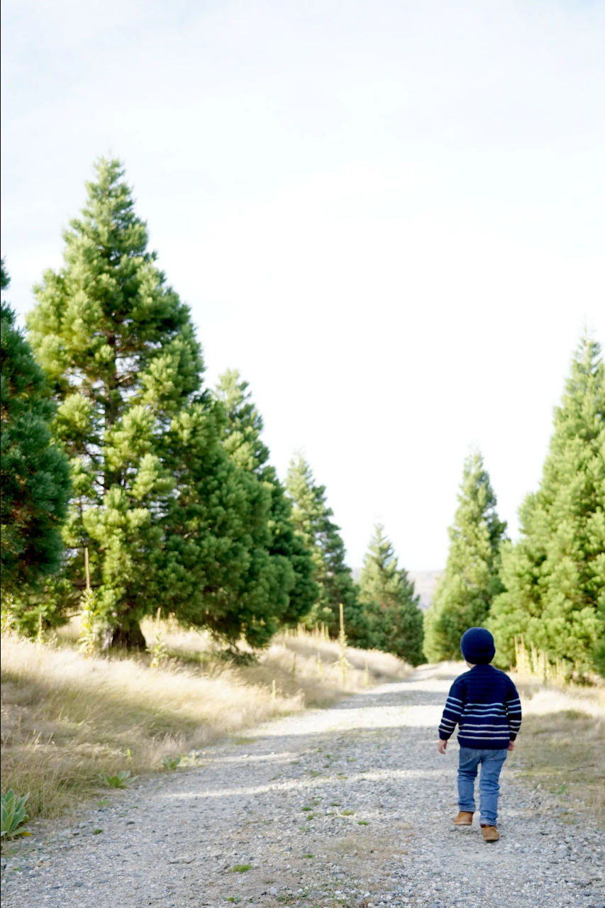 Knitted in three colours, Pukeho, Dove and Sky and a matching hat with rows of moss stitch.