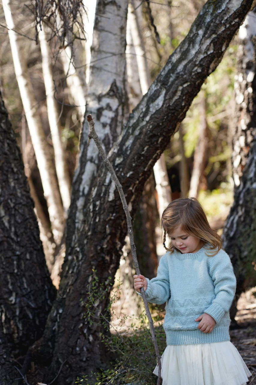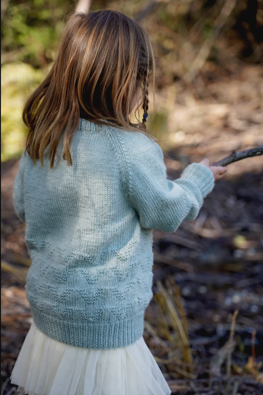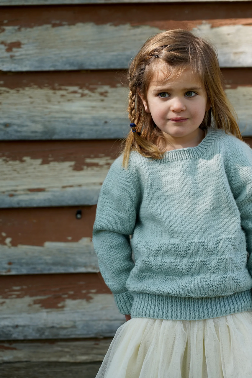 Knitted in 8ply merino this raglan sleeve sweater features a textured pattern and a crew neck.