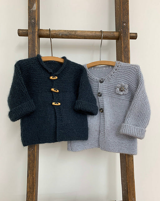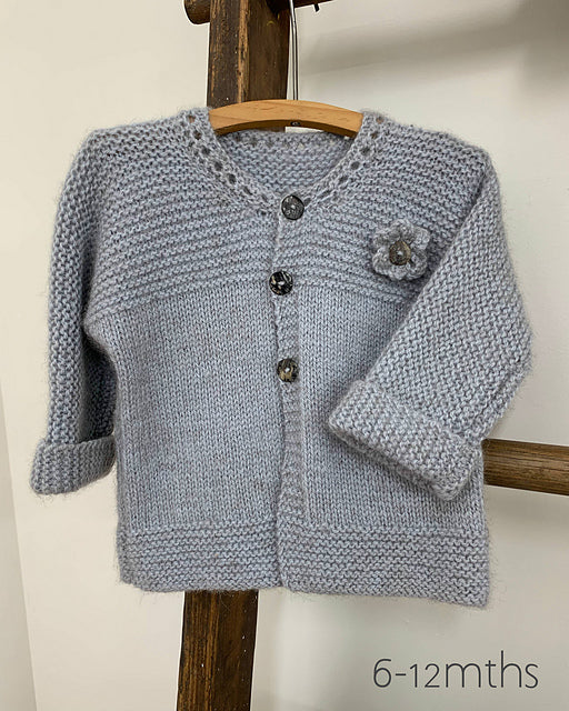 A delightful easy to knit, all in one, with optional collars and flower motif