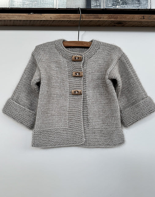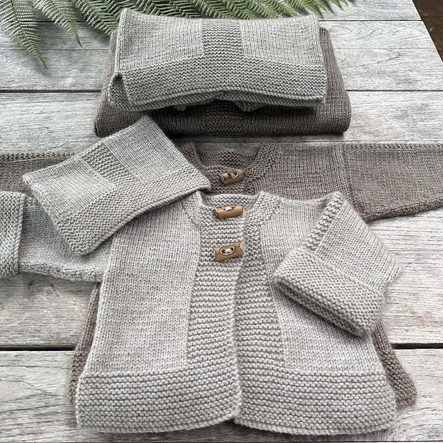 A cosy everyday layer for little ones, the kimono-inspired Mio Jacket & Hat are simple to knit and easy to wear.