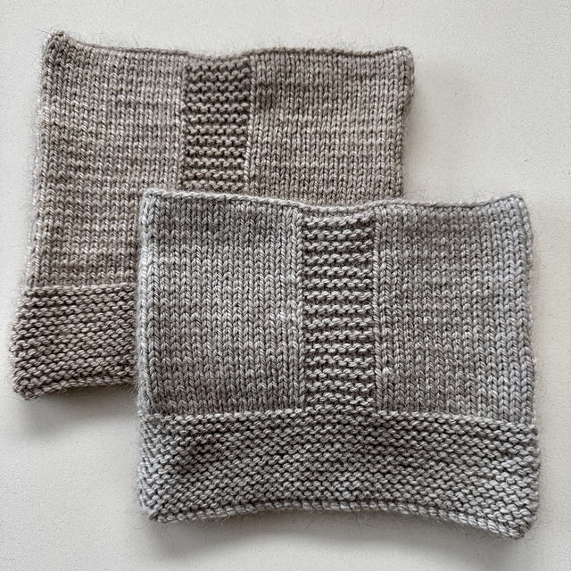 Garter-stitch bands frame the stocking stitch, with options for one to three buttons or toggles.